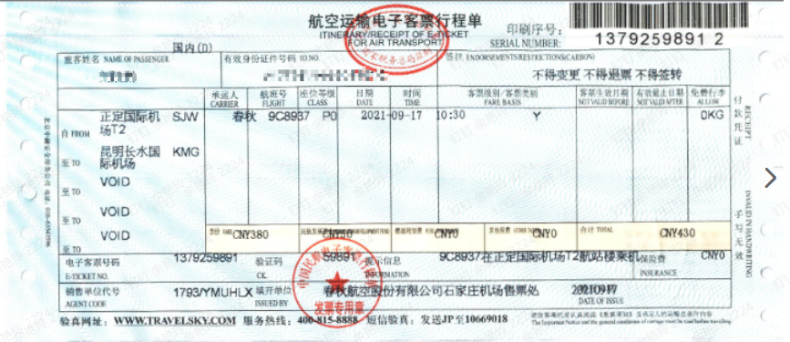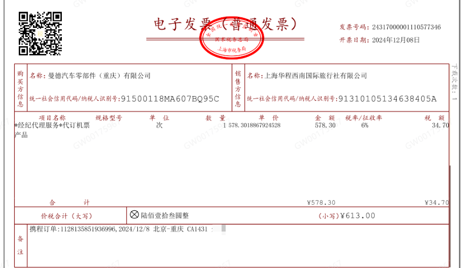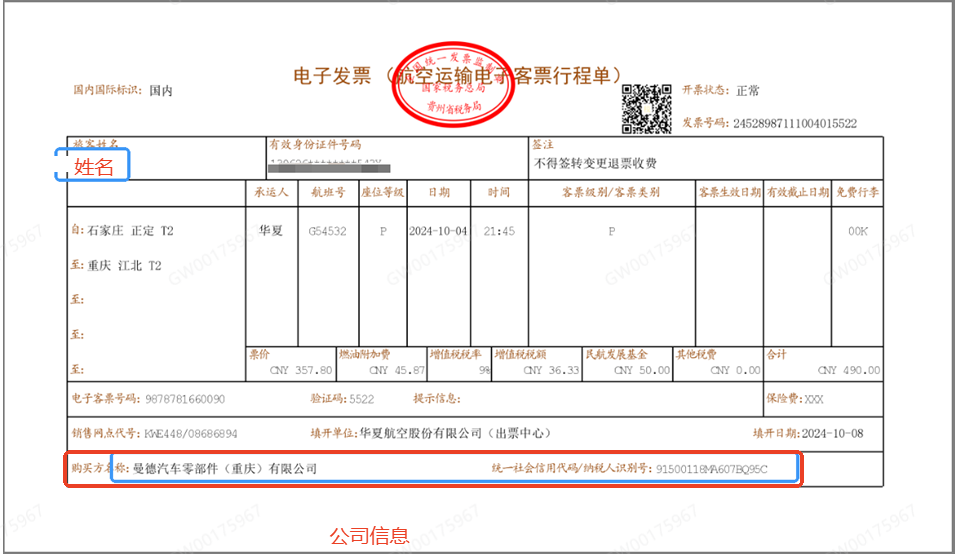 仅含公司信息,不含旅客个人信息,不得计算扣除。个人承担税损